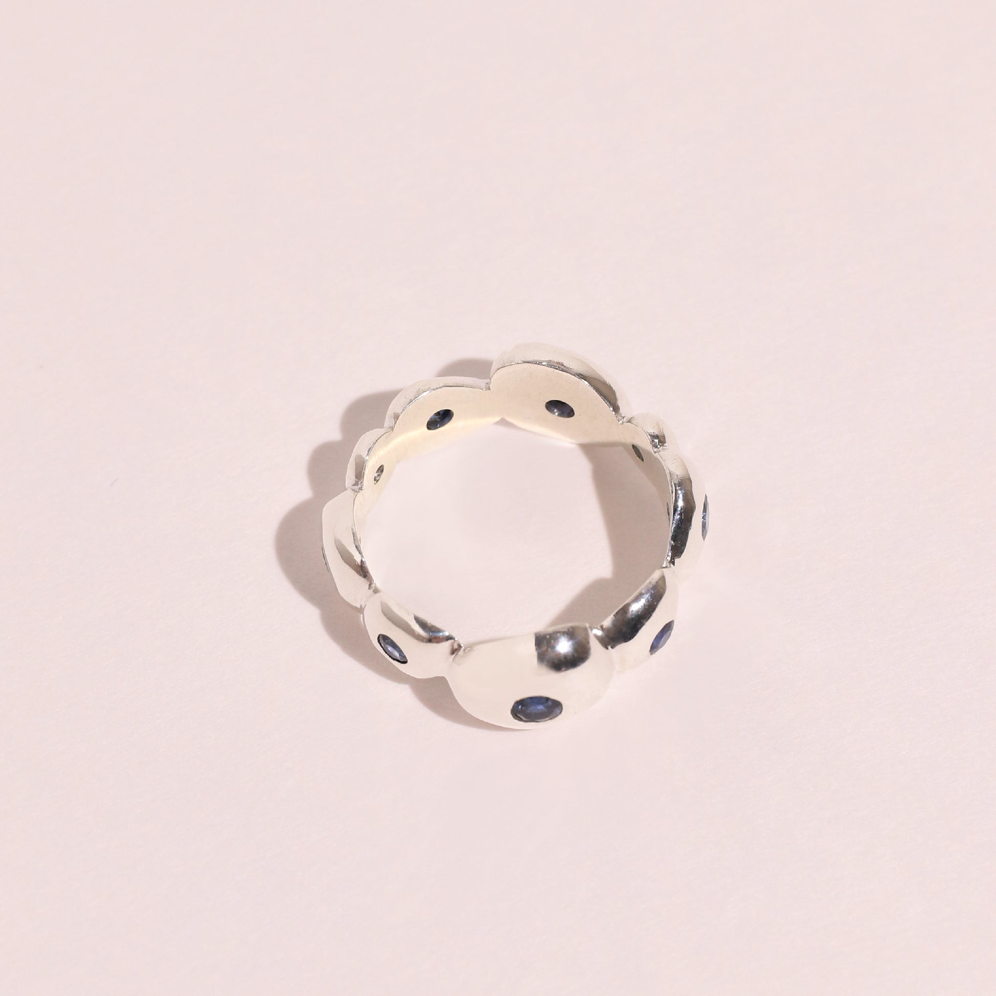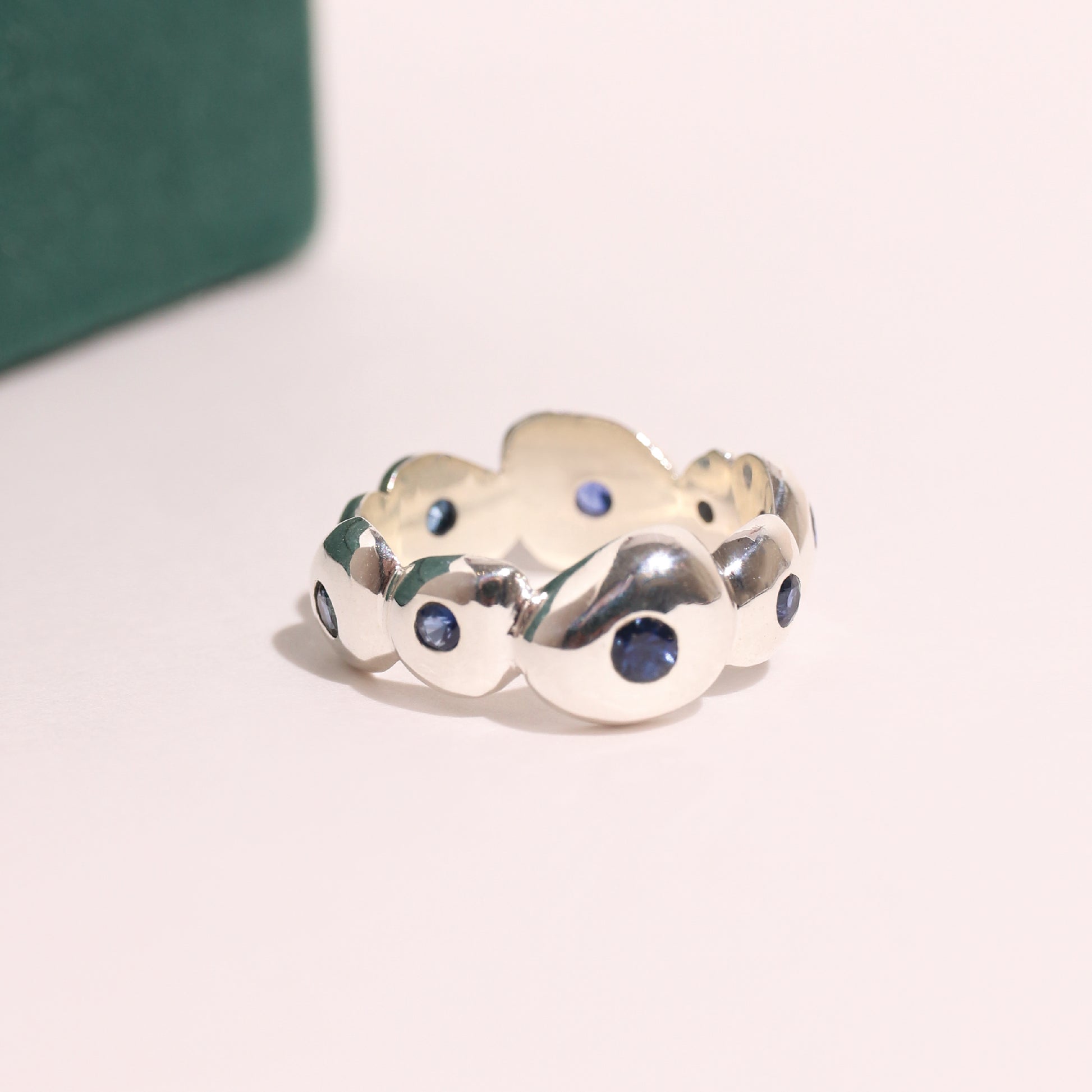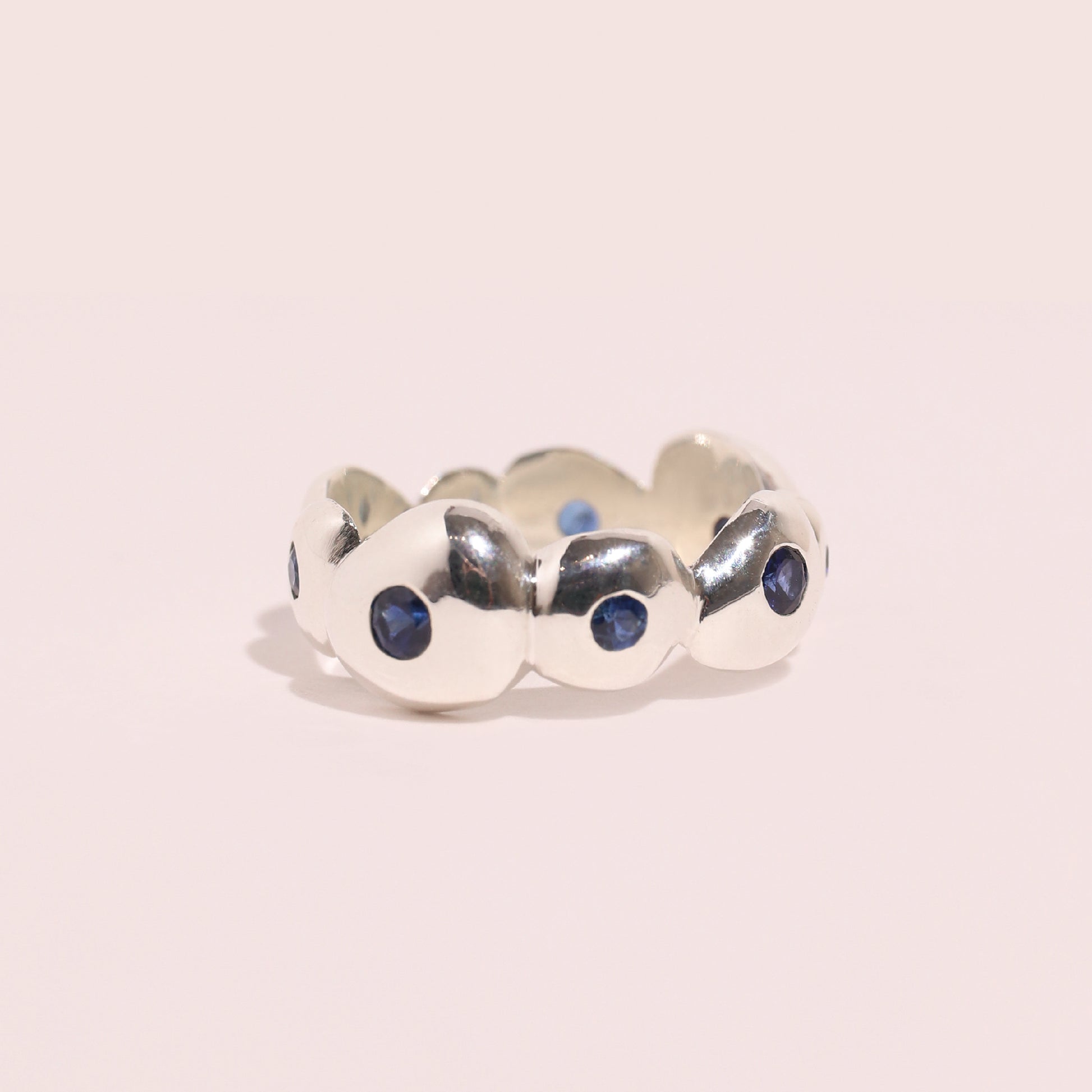 Anillo de plata ley 950 con 8 zafiros azules en talla brillante 10,1 cts