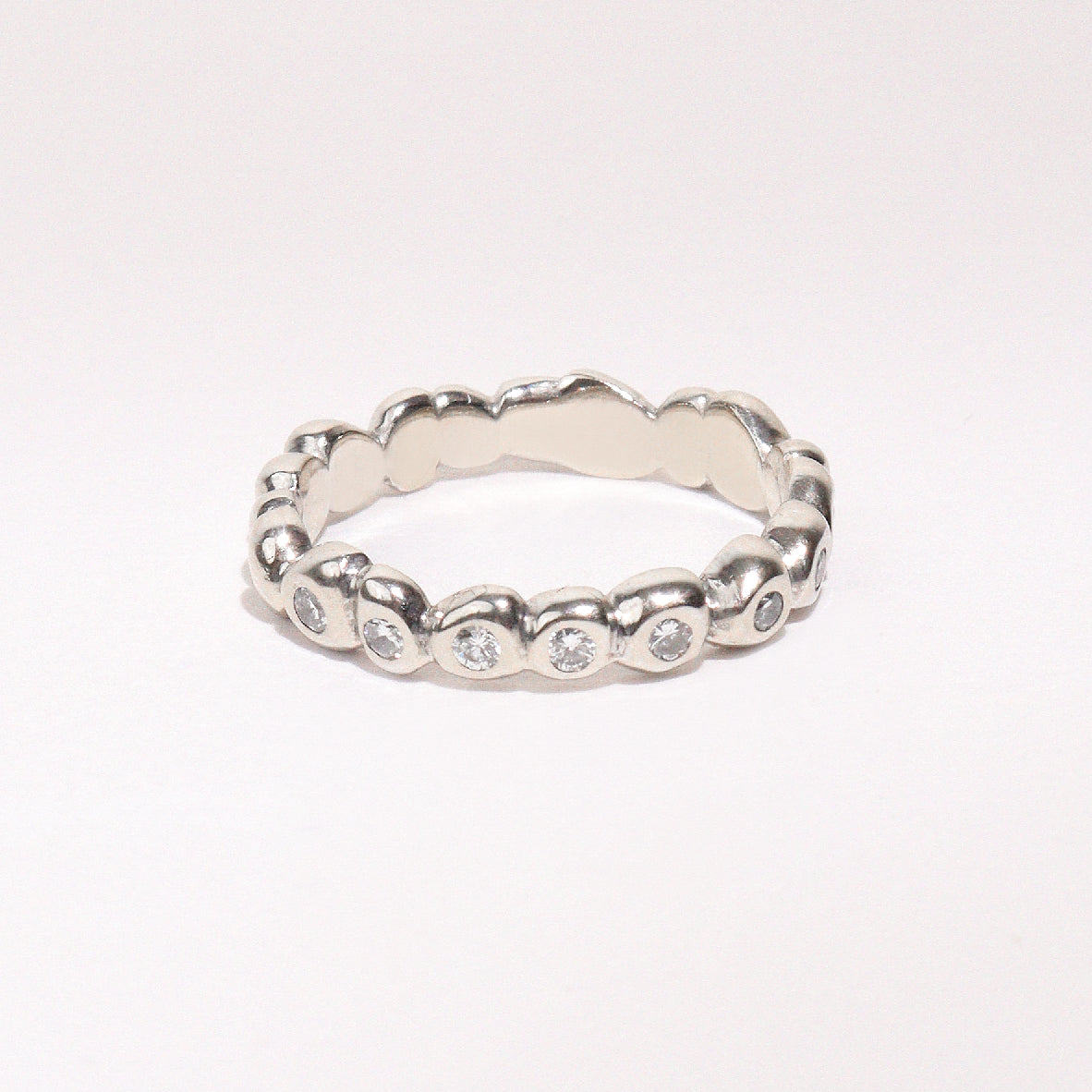 Anillo de plata ley 950 con 10 diamantes blancos en talla brillante