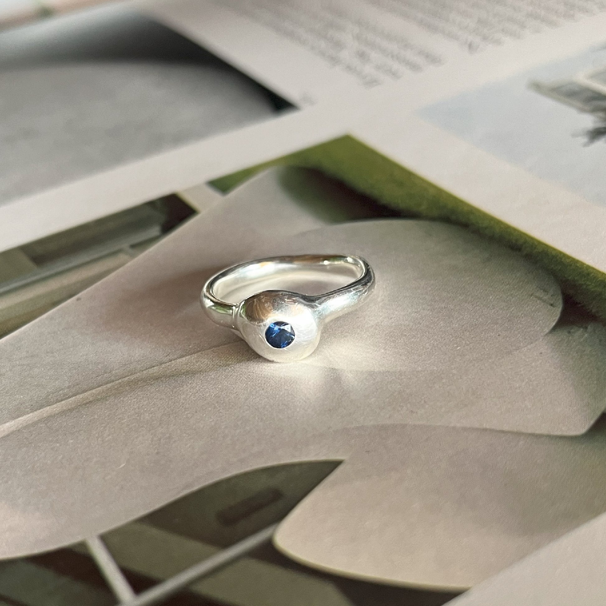 Anillo ley 950 con 0,08 cts de zafiro en talla brillante