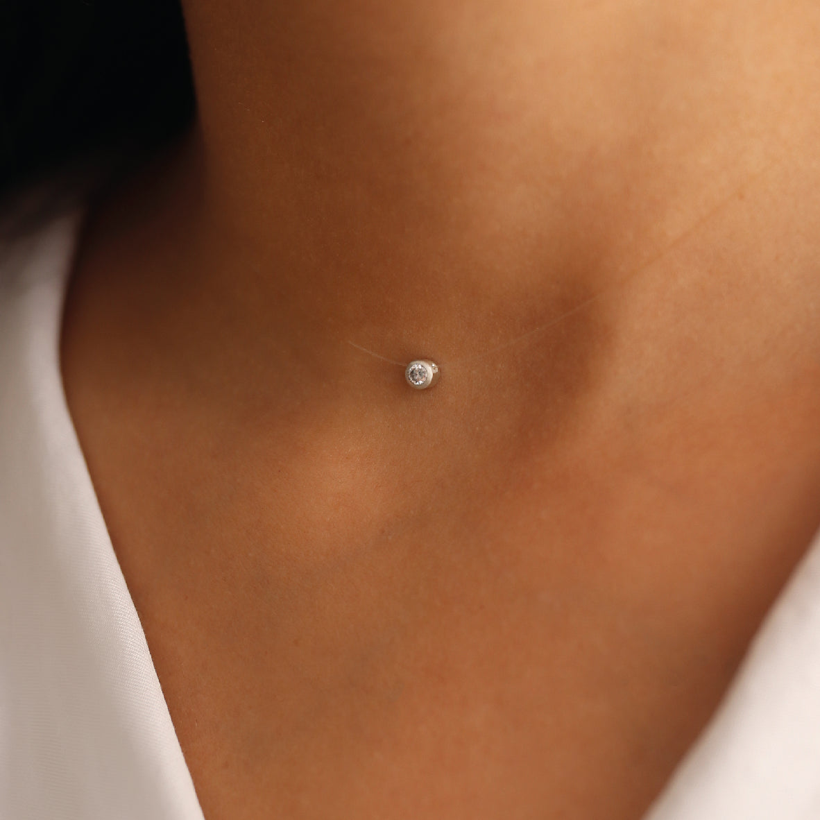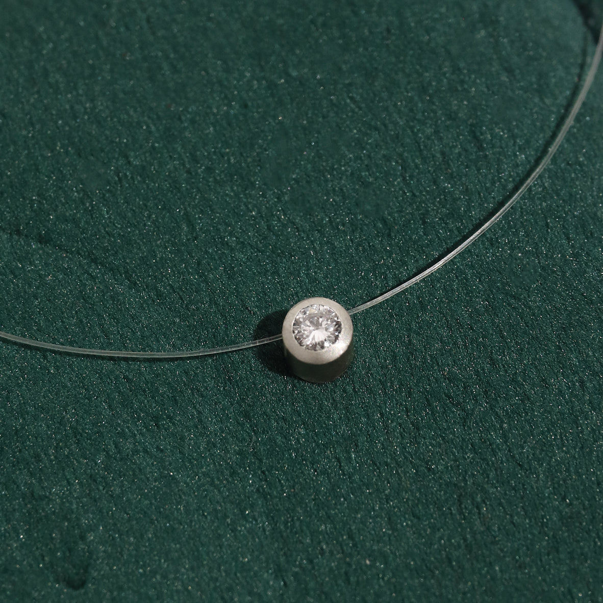 Collar de nylon con dije en plata ley 950 y detalles en plata, adornado con un diamante de 0,09 cts en talla brillante.