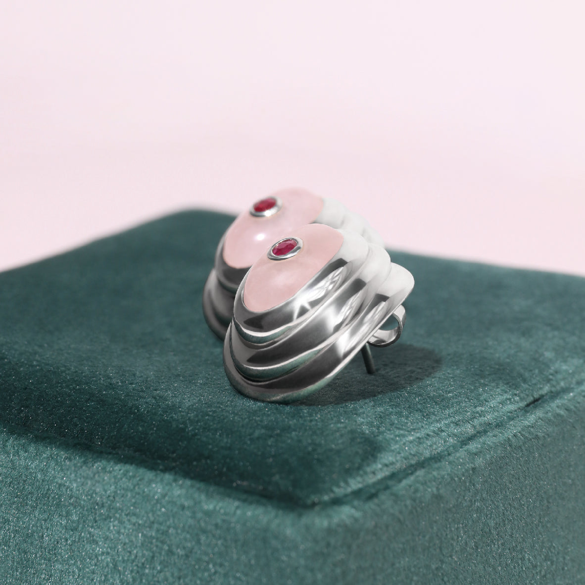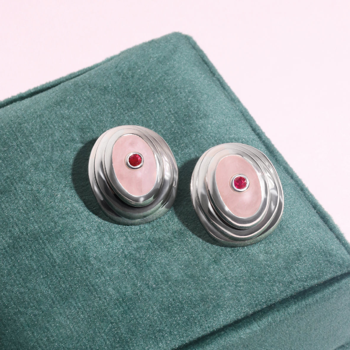 Topos de plata ley 950 con 2 rubíes en talla brillante con un total de 0,22 cts.